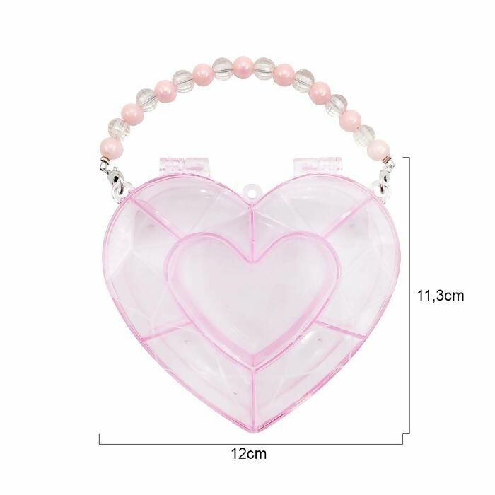Descrição Caixa organizadora Coração com alça - 6 divisórias - Rosa - UT.935