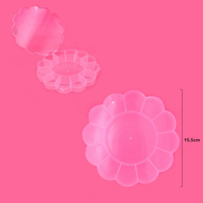 Aqui na Roma Aviamentos você encontra Caixa organizadora flor com 13 divisórias. Ideal para guardar e organizar, pérolas, botões, linhas, alfinetes e outros materiais pequenos.