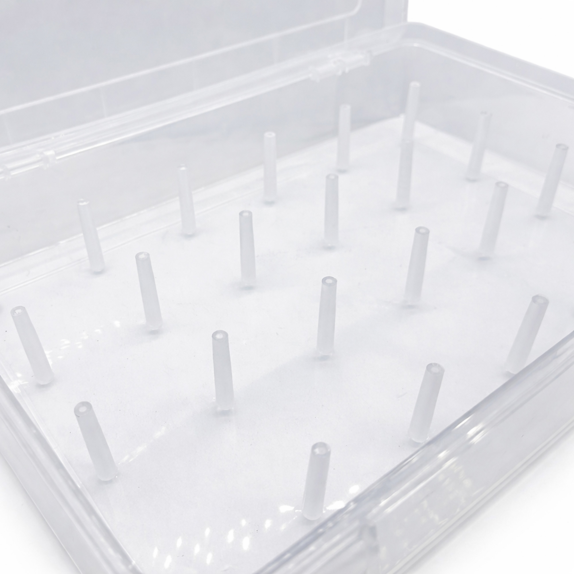 Fabricada em 100% plástico resistente, possui pinos internos que acomodam as linhas individualmente, além de tampa com travas firmes, garantindo segurança no transporte e no uso diário. Transparente, facilita a identificação das cores — menos tempo procurando, mais tempo criando.