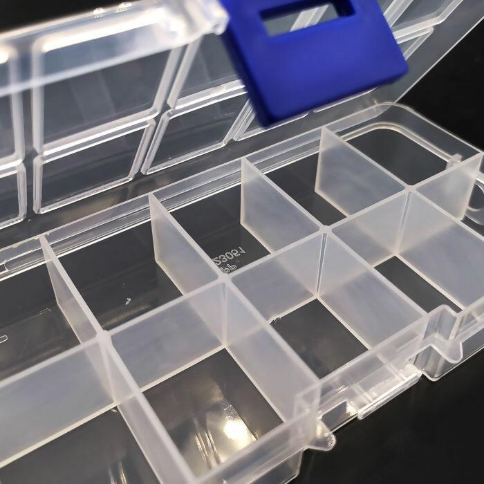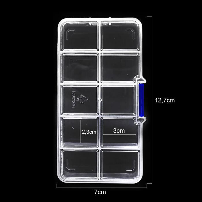 Detalhe Caixa organizadora Retangular - 10 divisorias - Transparente - UT.895