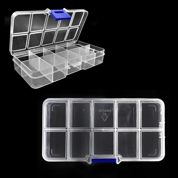 Descrição Caixa organizadora Retangular - 10 divisorias - Transparente - UT.895