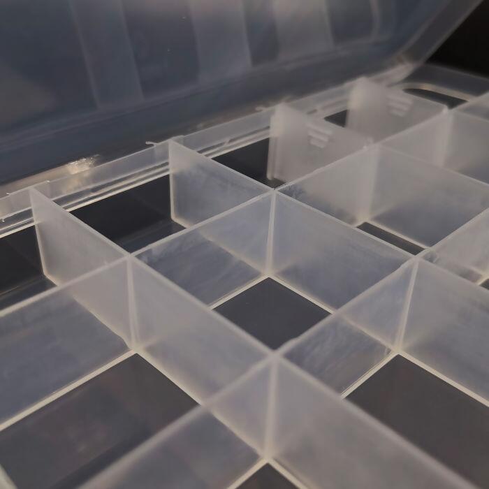Detalhe Caixa organizadora Retangular - 15 divisorias - Transparente - UT.896