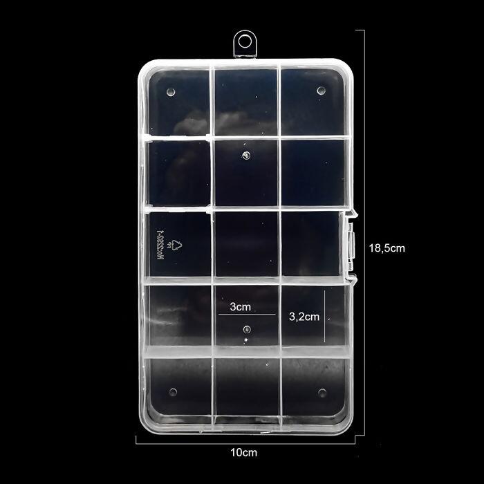 Descrição Caixa organizadora Retangular - 15 divisorias - Transparente - UT.896