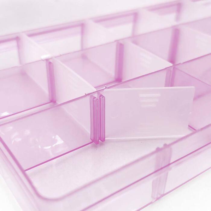 Ideal para guardar e organizar, pérolas, botões, linhas, alfinetes e outros materiais pequenos.
