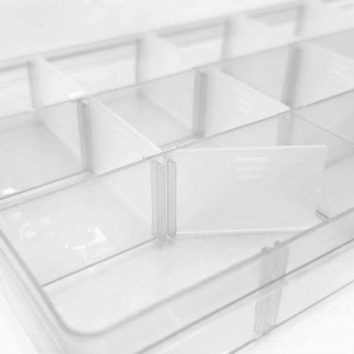 Ideal para guardar e organizar, pérolas, botões, linhas, alfinetes e outros materiais pequenos.