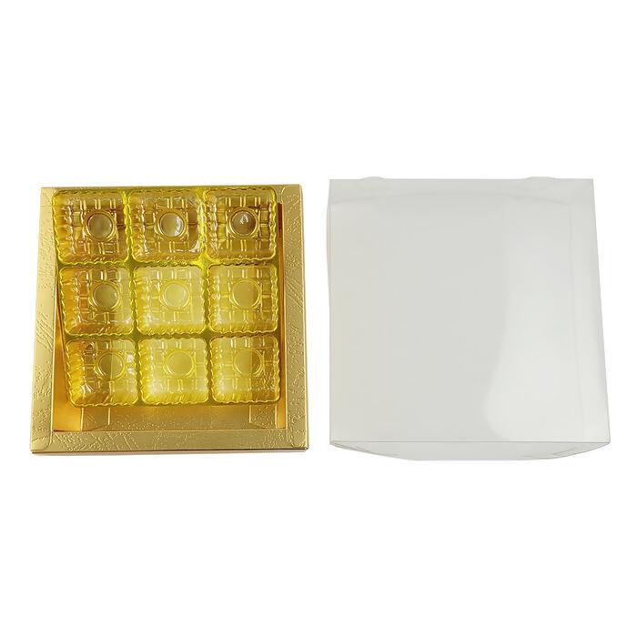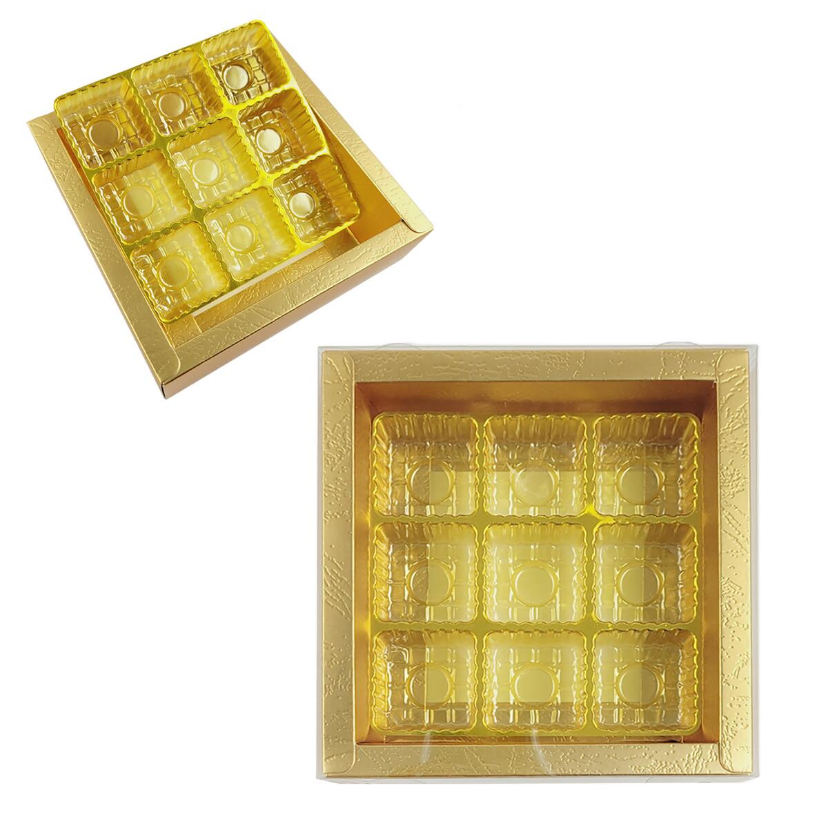 Caixa para Doce 13cm x 13cm x 3,8cm Dourada com 9 Divisórias RO.154447