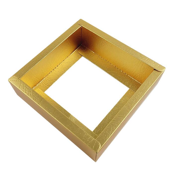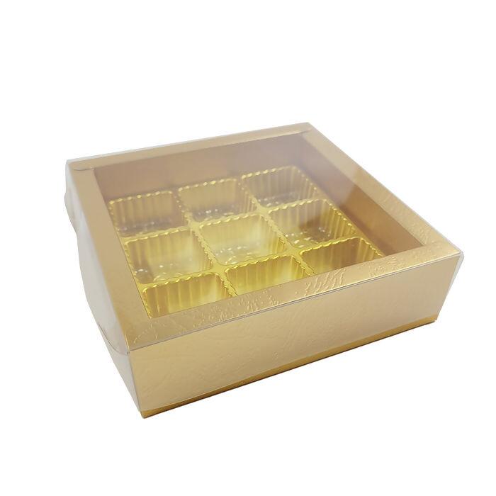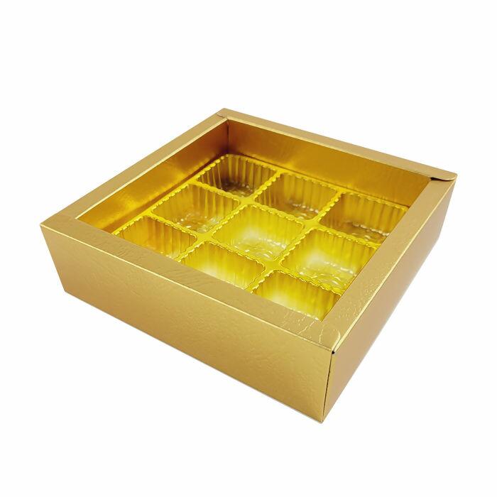 Descrição Caixa para Doce 13cm x 13cm x 3,8cm Dourada com 9 Divisórias RO.154447