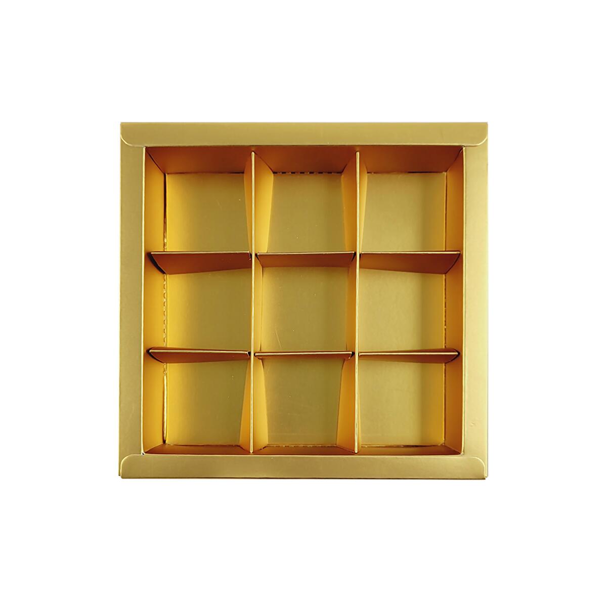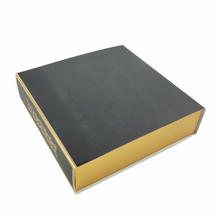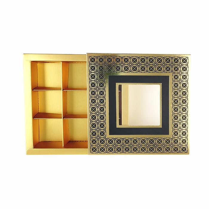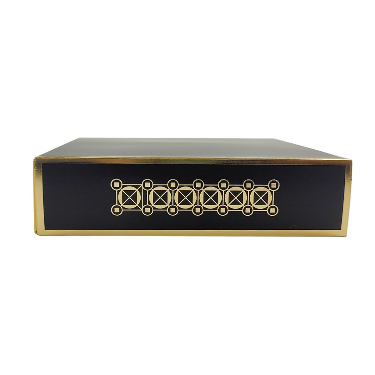 Descrição Caixa para Doce 15cm x 15cm x 3,8cm Dourada e Preta Luxo RO.154448