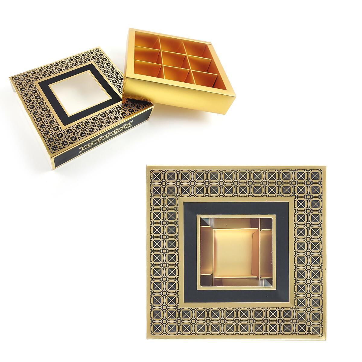 Caixa para Doce 15cm x 15cm x 3,8cm Dourada e Preta Luxo RO.154448