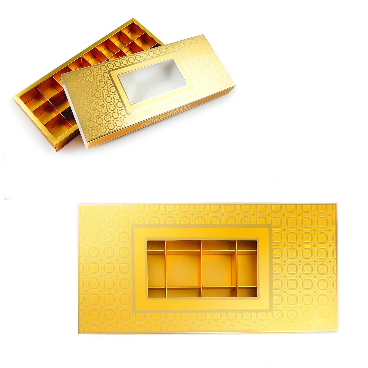 Descrição Caixa para Doces Dourada 36,5cm x 15cm x 4cm 24 Divisórias RO.154445