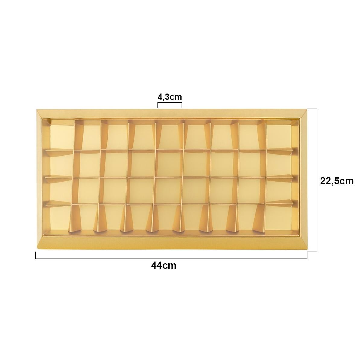 Caixa para Doces Dourada com Divisórias e Tampa Transparente 44cm x 22,5cm RO.154441