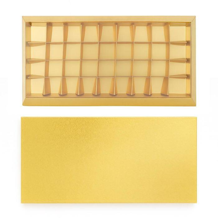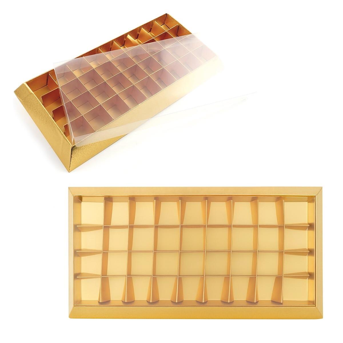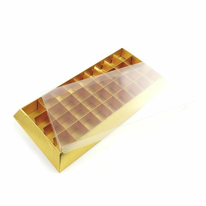 Descrição Caixa para Doces Dourada com Divisórias e Tampa Transparente 44cm x 22,5cm RO.154441