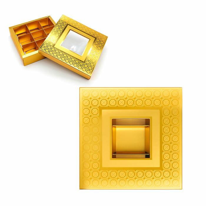 Caixa para Doces Luxo 15cm x 3,8cm – 9 Divisórias Texturizada com Visor Decorado