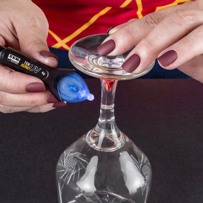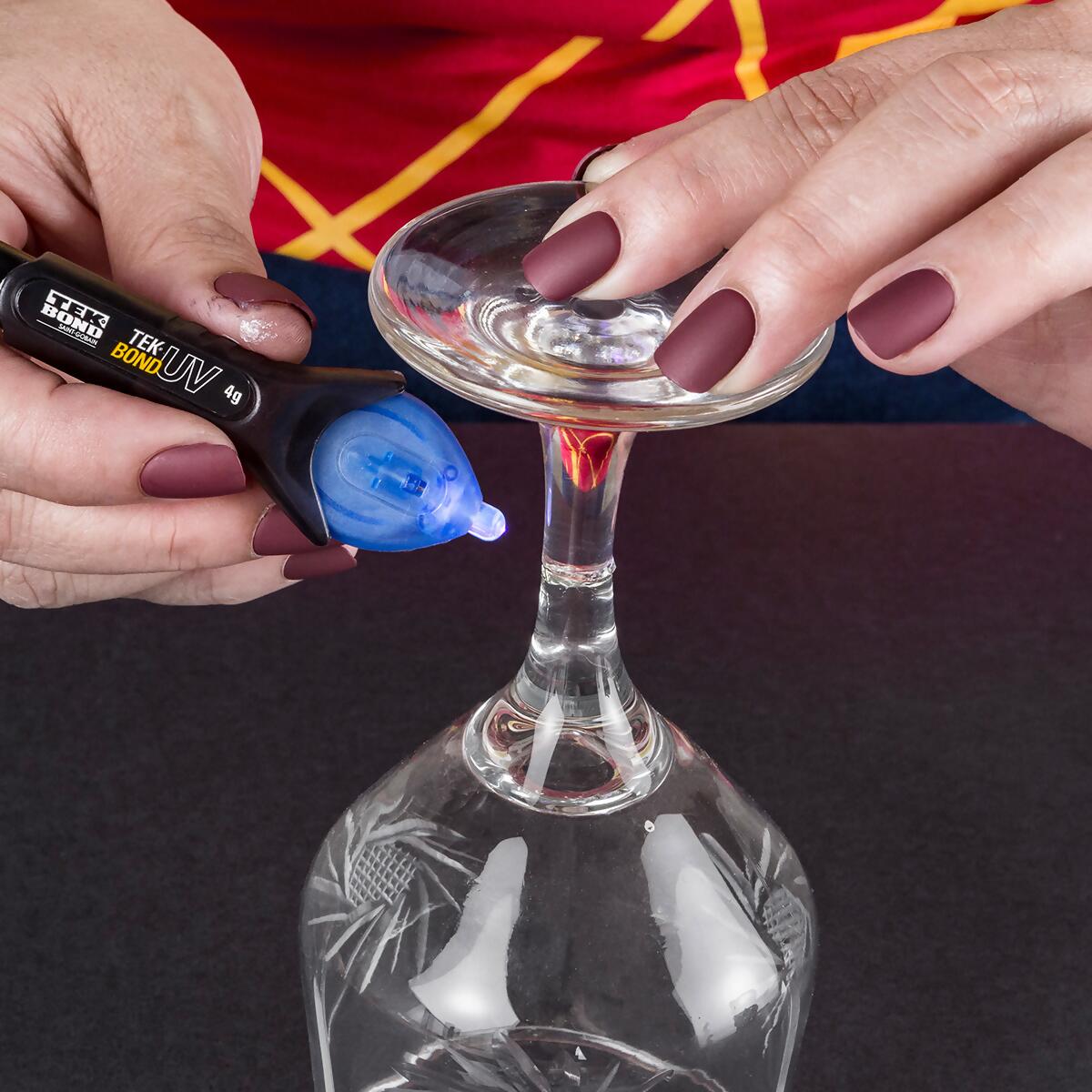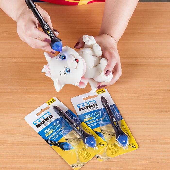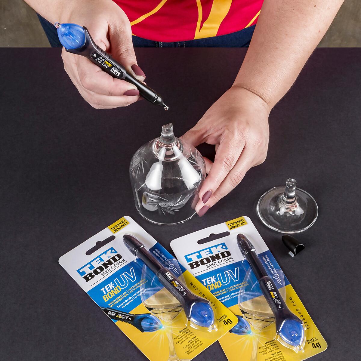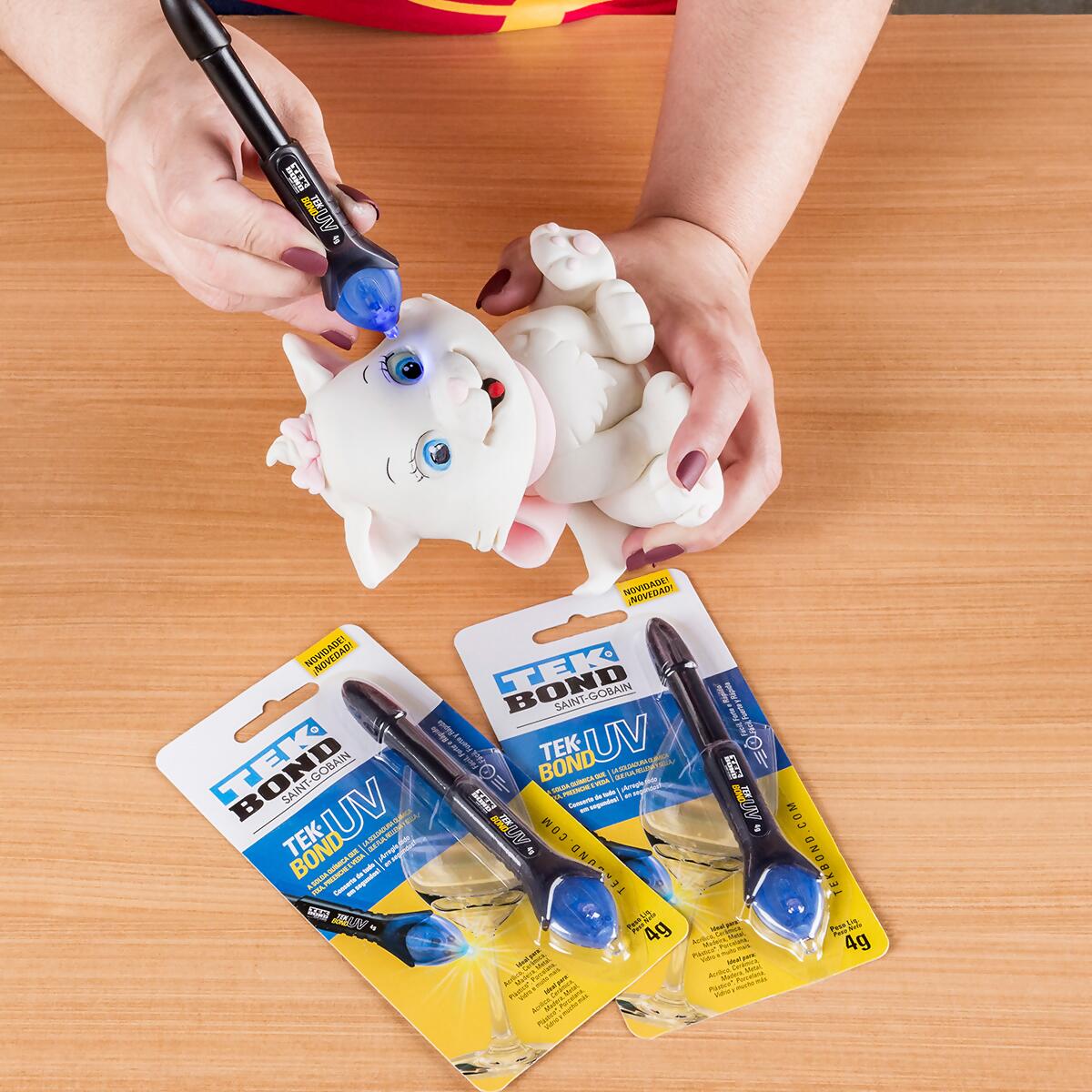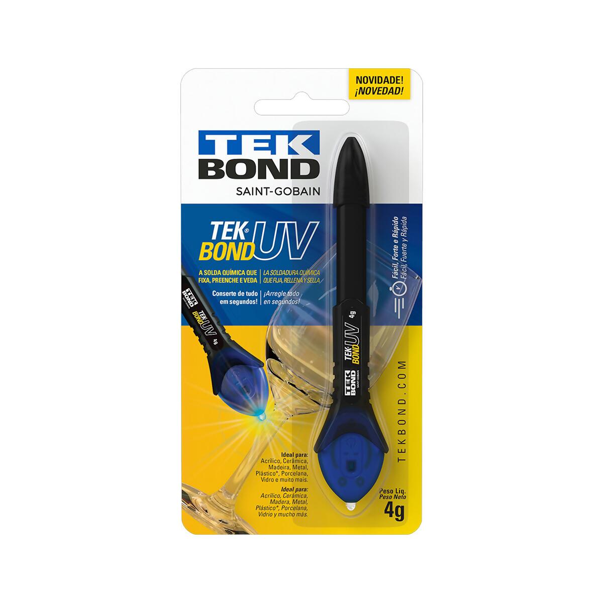 A Caneta UV da Tekbond tem uma tecnologia surpreendente. Basta aplicar a cola e, sem pressa, posicionar exatamente onde deseja fixar a peça. O processo de solda só é ativado na presença da luz ultravioleta emitida pela caneta. Ou seja, não tem perigo de colar torto, fora do lugar.