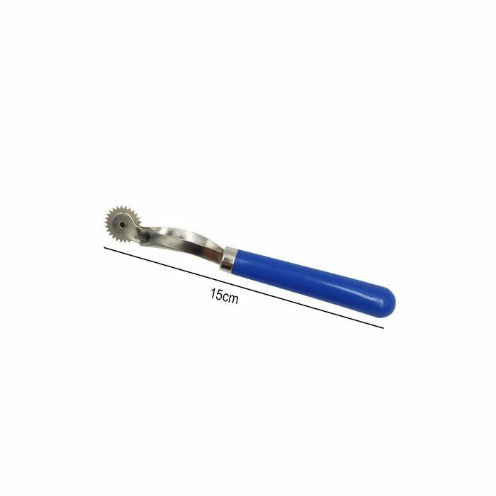 Essa carretilha é projetada para marcar linhas e pontos de referência no tecido com precisão e facilidade. O cabo de plástico oferece uma aderência confortável e ergonômica durante o uso, permitindo que você crie marcações precisas de maneira eficiente.