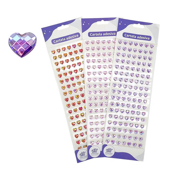 Descrição Cartela Strass Adesiva Coração Princess - 8mm - 119 unidades - RO.153322
