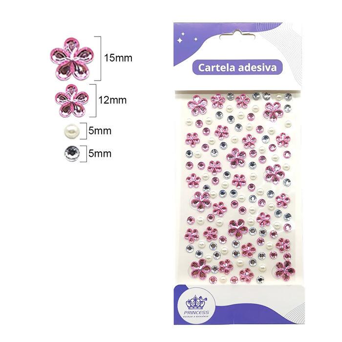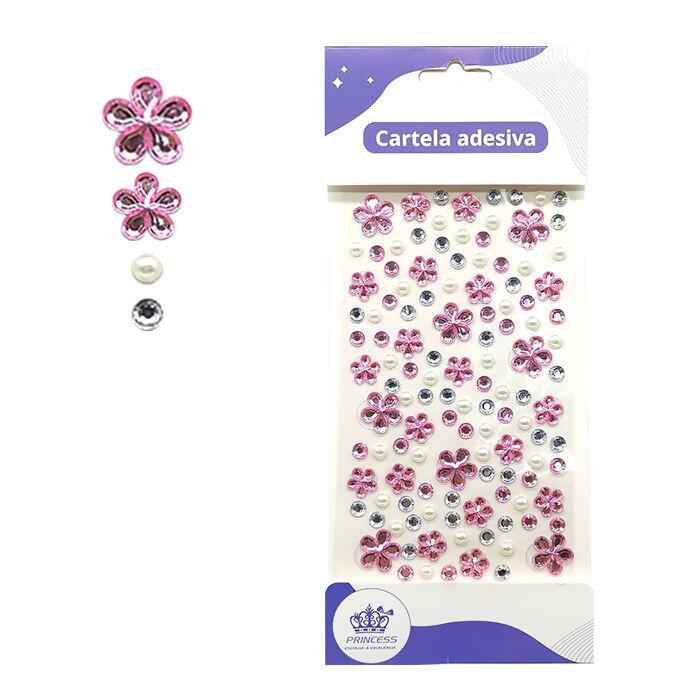 Descrição Cartela Strass Adesiva Princess Flor Rosa RO.152091