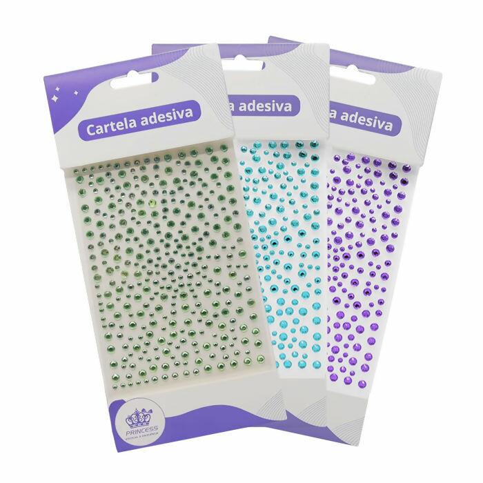 A Cartela de Strass Adesivo Princess é ideal para quem deseja dar brilho e sofisticação em trabalhos manuais, artesanato, lembrancinhas, convites e até na personalização de acessórios. Os strass já vêm com cola, prontos para aplicar em diversas superfícies de forma prática e rápida.