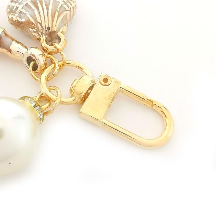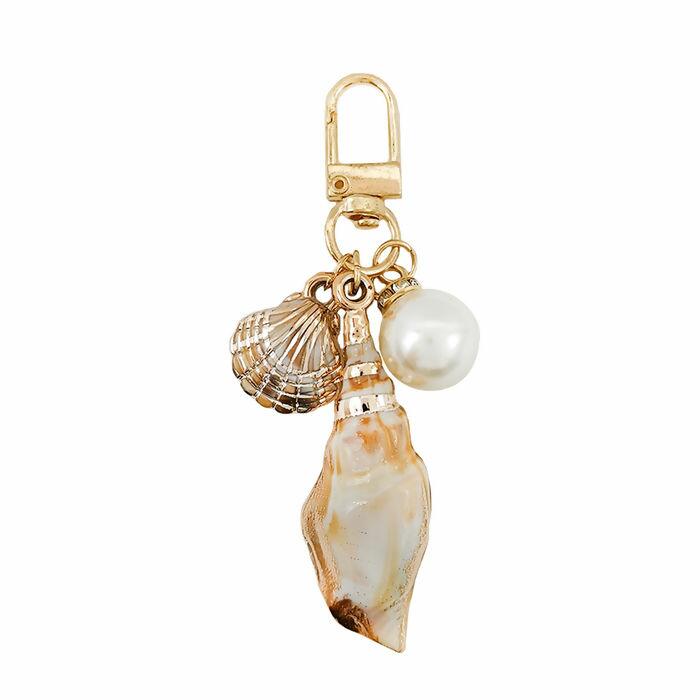 Descrição Chaveiro com Concha, Pérola e Pingente Concha Dourado 9,5cm RO.153910