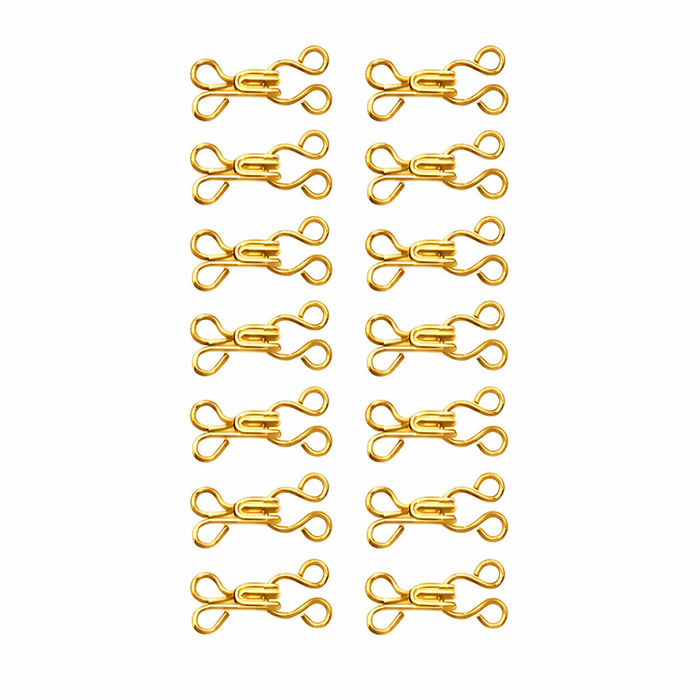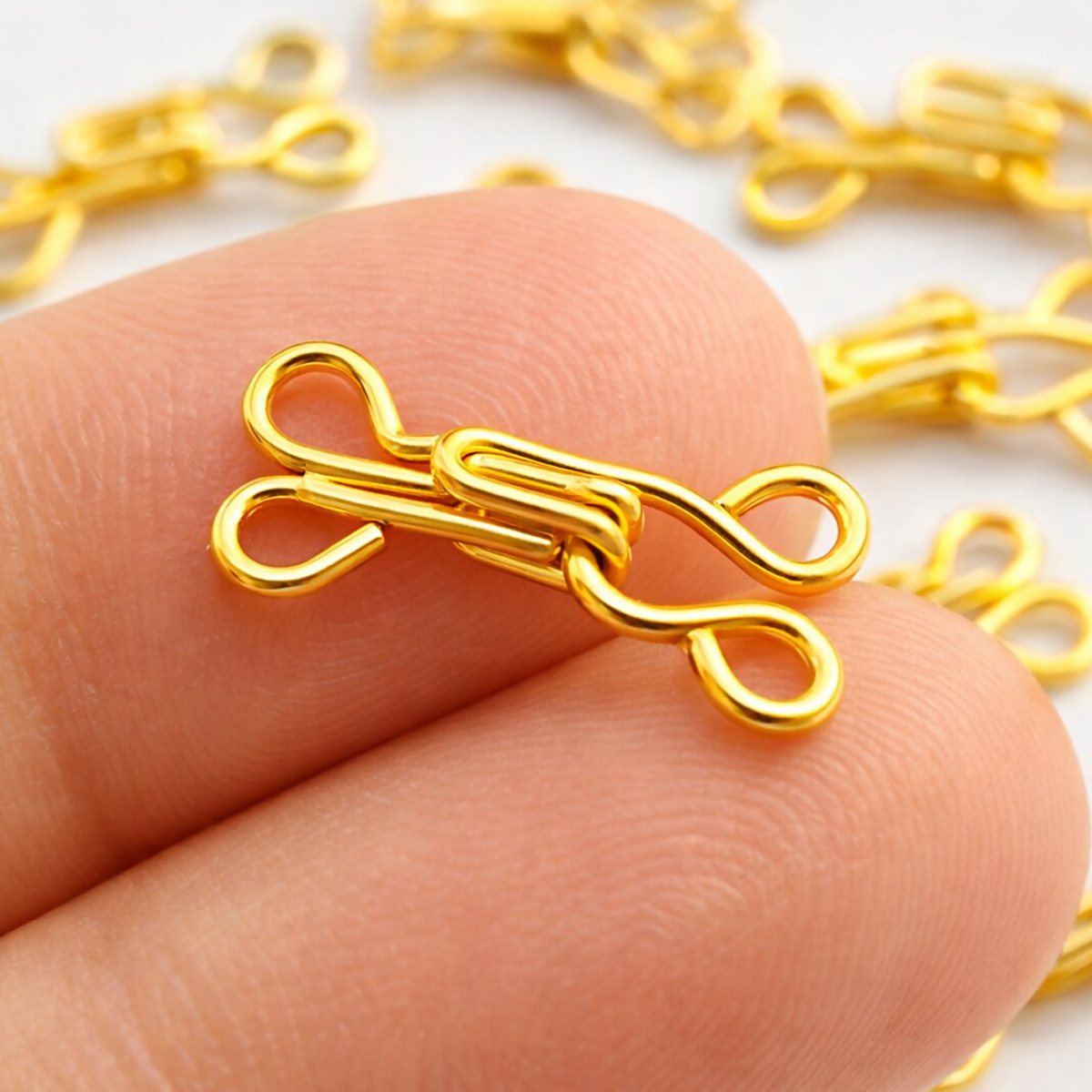 O colchete gancho dourado é um aviamento clássico, resistente e discreto, ideal para fechamentos firmes e bem-acabados. Produzido em metal com banho dourado, garante durabilidade, encaixe preciso e um visual sofisticado que valoriza a peça final. Disponível nos tamanhos 15 mm e 22 mm, atende desde trabalhos delicados até aplicações que exigem mais firmeza.