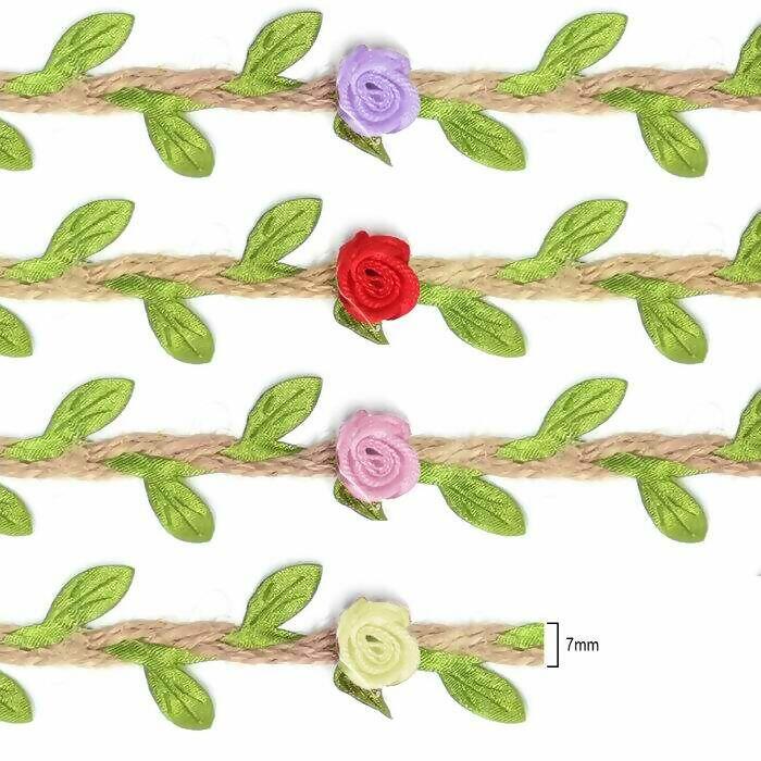 Cordão de juta com florezinhas de rococó ideal para confeccionar tiaras, coroa de flores, decorar objetos e ambientes.