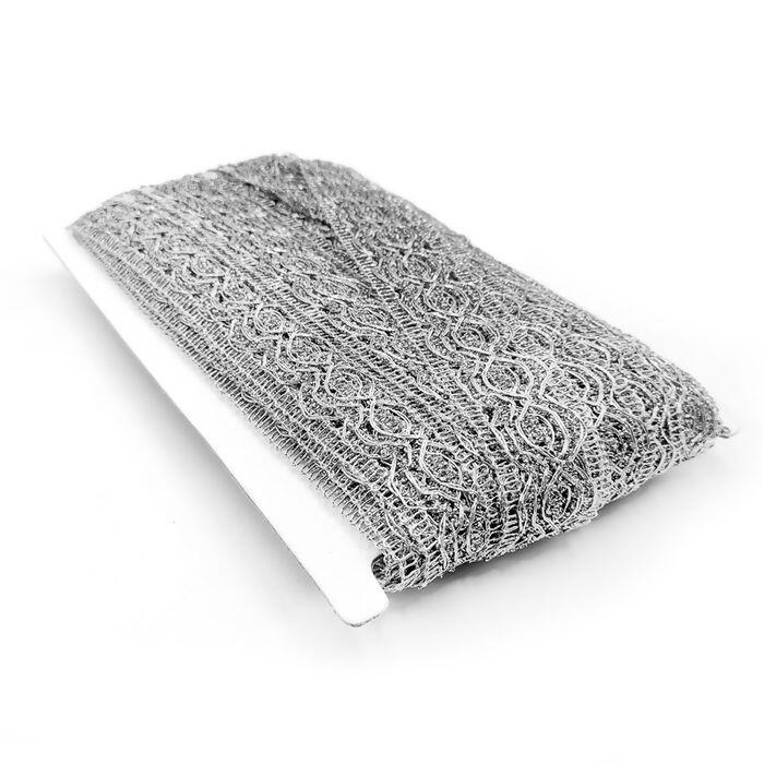 Detalhe Cordão Trançado Metalizado - 35mm x 20m - Prata - 1359