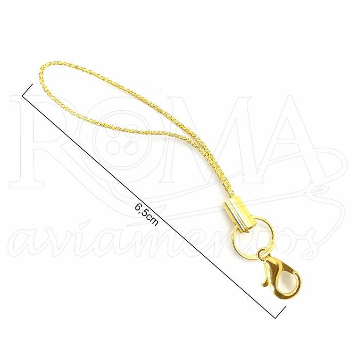 Descrição Cordinha com Argola e Mosquetão - 100 unidades - 6,5cm - Dourado - RO.151173
