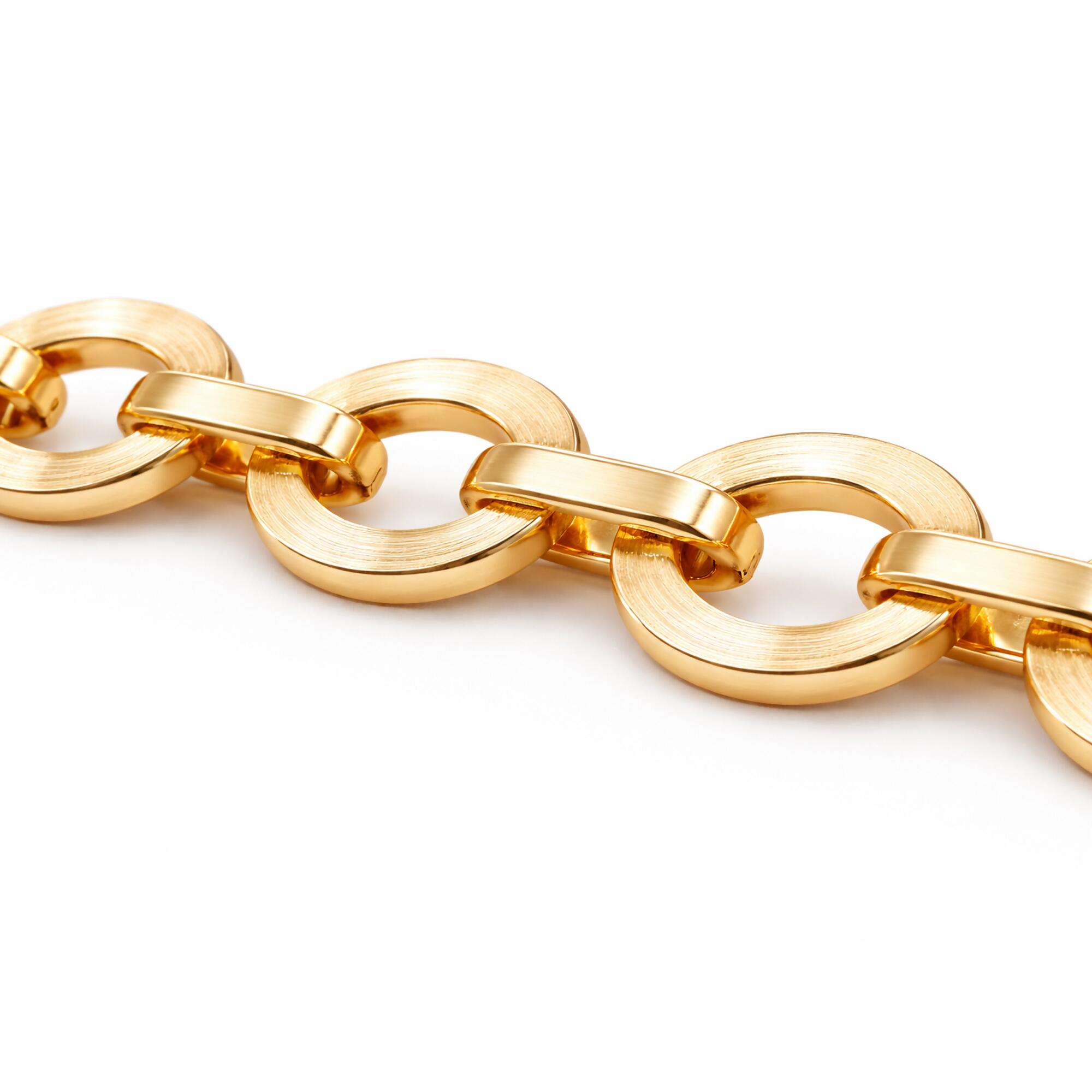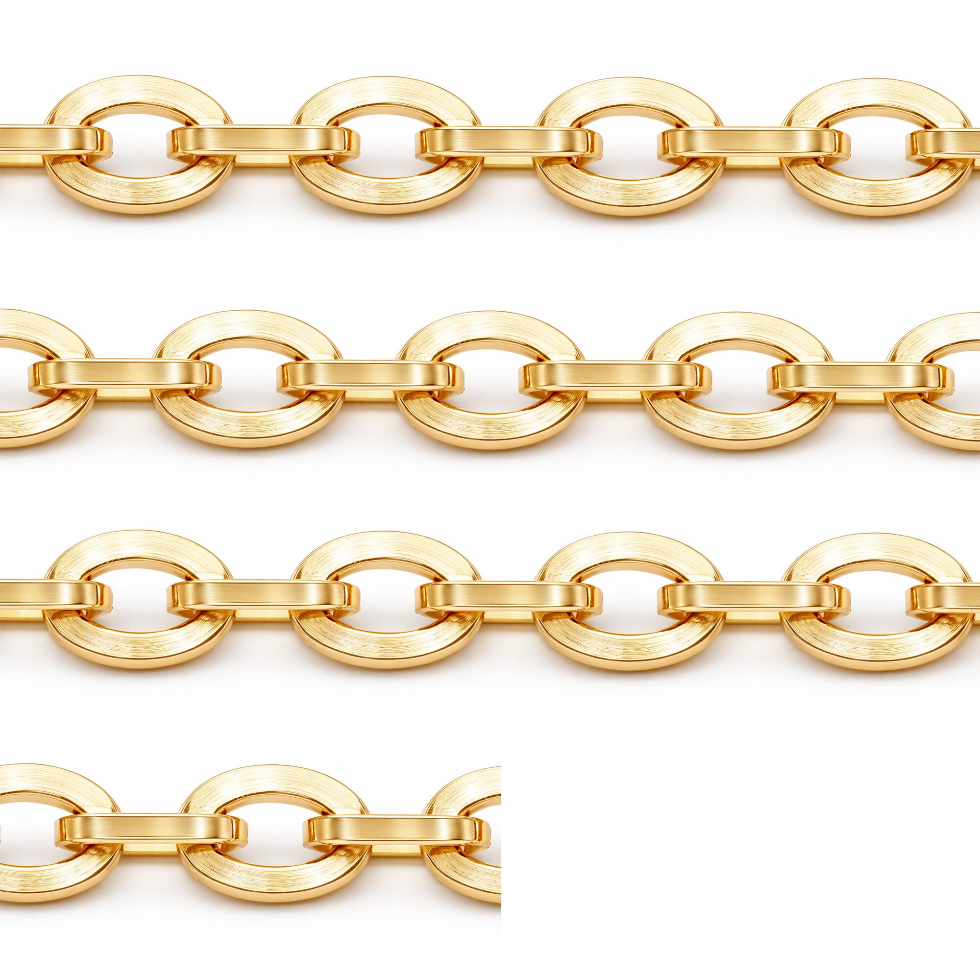 A corrente de alumínio dourado 15mm é sinônimo de impacto e sofisticação. Com elos extra largos e acabamento dourado premium, entrega um visual poderoso para peças que precisam se destacar. Mesmo robusta, mantém a leveza do alumínio, garantindo conforto e praticidade no uso.