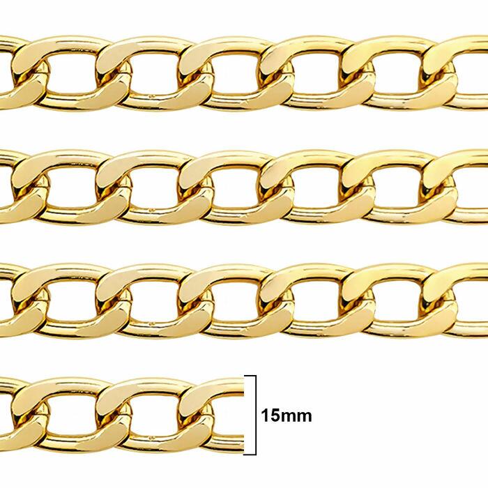 Descrição Corrente de Alumínio - 23mm x 15mm - Dourado - RO.153773