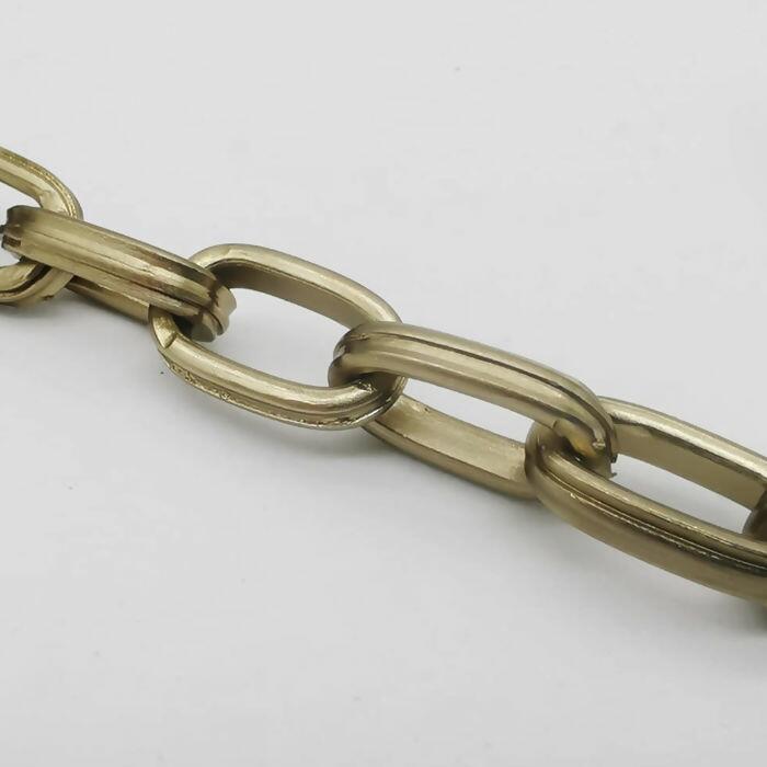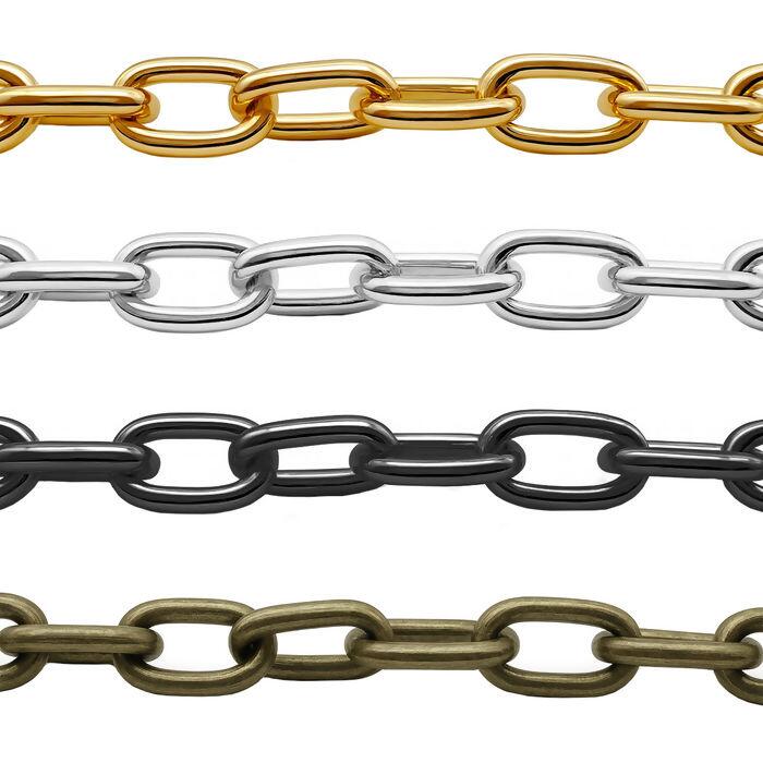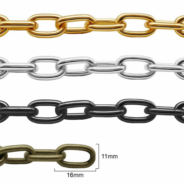 Corrente resistente e leve, fabricada em alumínio de alta qualidade, ideal para confecção de bolsas, alças, bijuterias e artesanatos em geral. Disponível em quatro acabamentos sofisticados: dourado, níquel, ônix e ouro velho, garantindo versatilidade para diferentes estilos e combinações.