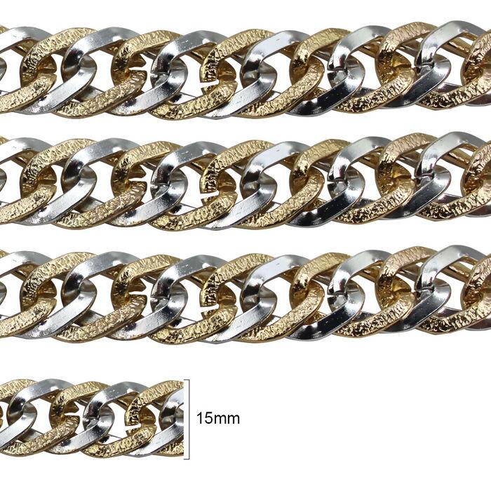 Corrente de Alumínio Trabalhada - 15mm x 1m - Dourado Claro/ Prata - ROFR.151427