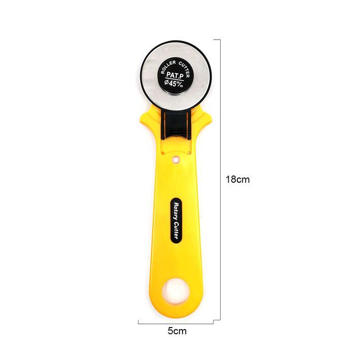 Cortador rotativo com cabo plástico e lâmina de aço, fácil de utilizar e com corte preciso. Ideal para tecidos, couro, papel e vinil.