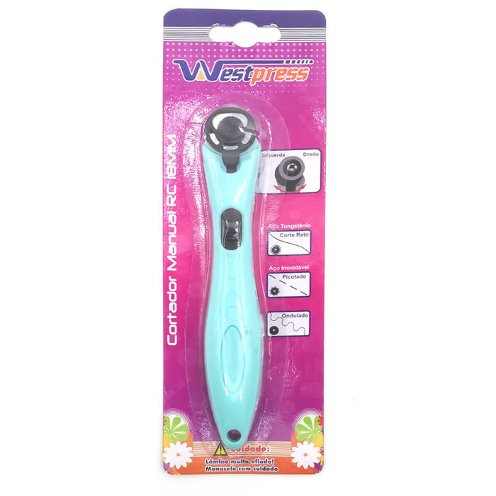 Cortador manual é ideal para cortes em tecidos, capaz de realizar três tipos de cortes sendo eles o corte reto, picotado e ondulado. Pode ser utilizado por destros e canhotos sem remontar o cortador. Cabo emborrachado para maior conforto. Capa de segurança retrátil ajusta ângulo automaticamente através da pressão do operador.