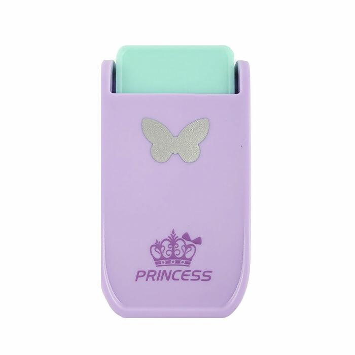 Descrição Cortador de Papel - Borboleta - Princess - 6,8cm x 3,8cm - Lilás/Verde - UT.1184