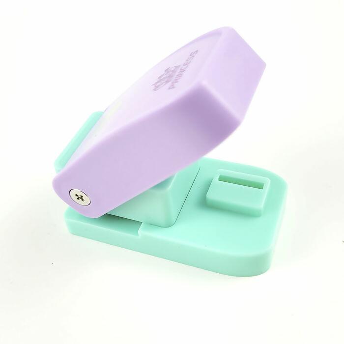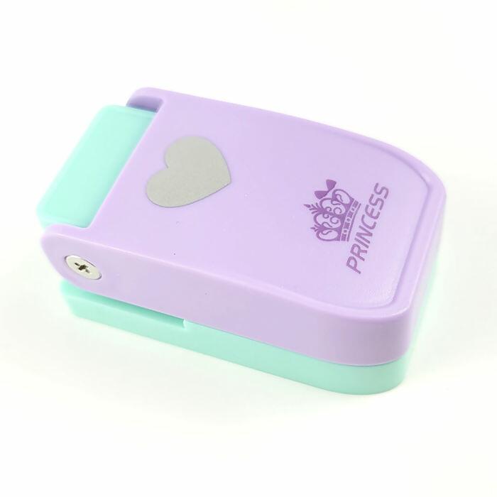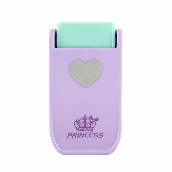 Descrição Cortador de Papel - Coração - Princess - 6,8cm x 3,8cm - Lilás/Verde - UT.1184