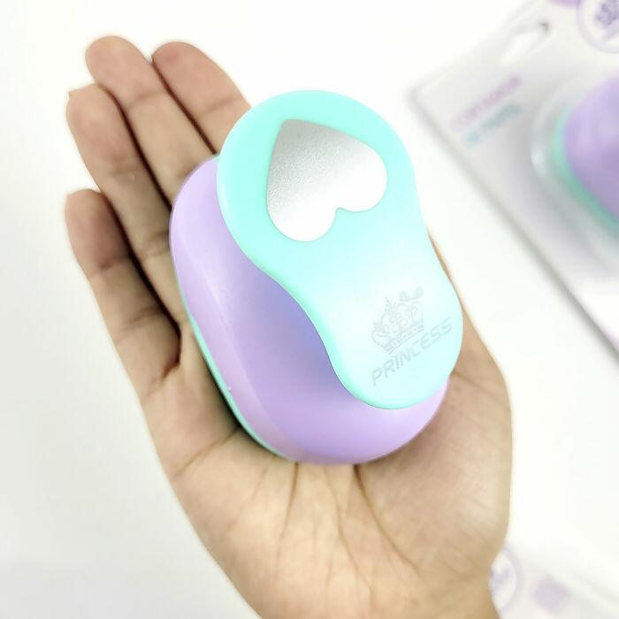 Descrição Cortador de Papel - Coração - Princess - 7,3cm x 4,5cm - Lilás/Verde - UT.1206