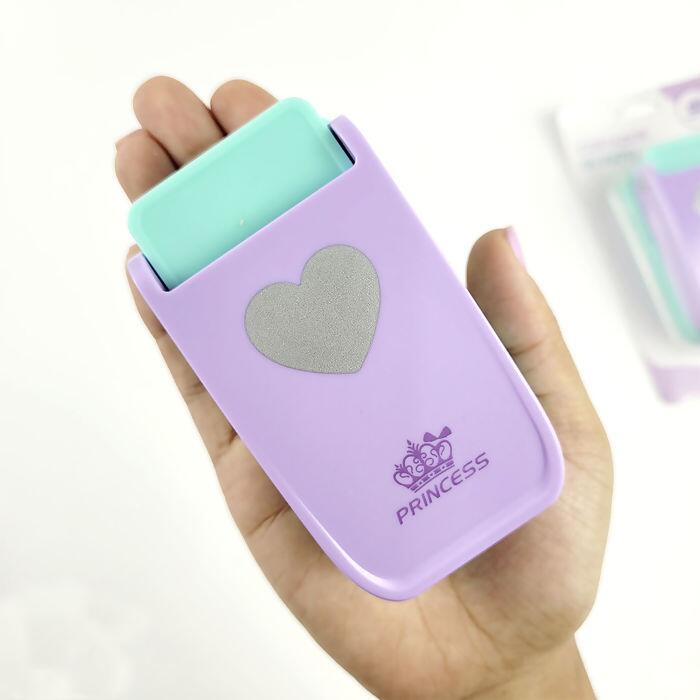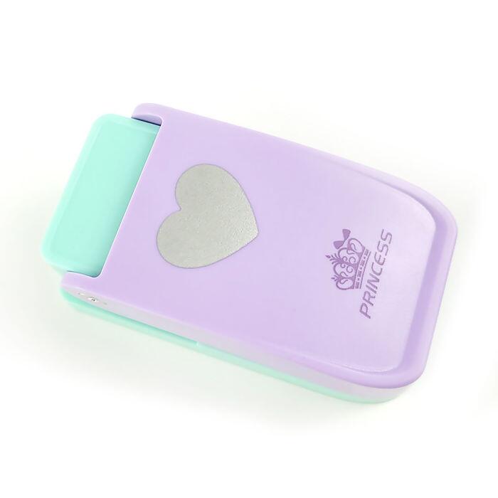 Descrição Cortador de Papel - Coração - Princess - 9,2cm x 5cm - Lilás/Verde - UT.1185