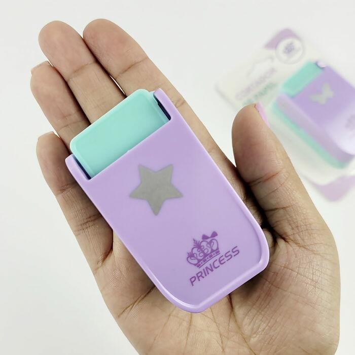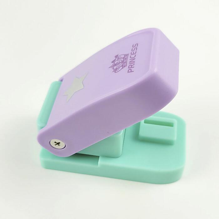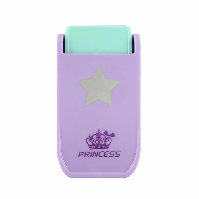 Descrição Cortador de Papel - Estrela - Princess - 6,8cm x 3,8cm - Lilás/Verde - UT.1184