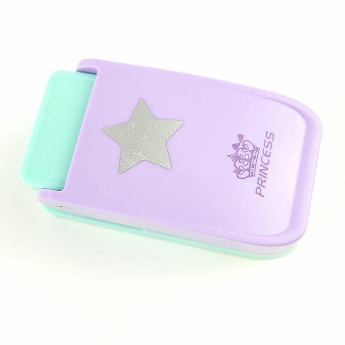 Descrição Cortador de Papel - Estrela - Princess - 9,2cm x 5cm - Lilás/Verde - UT.1185