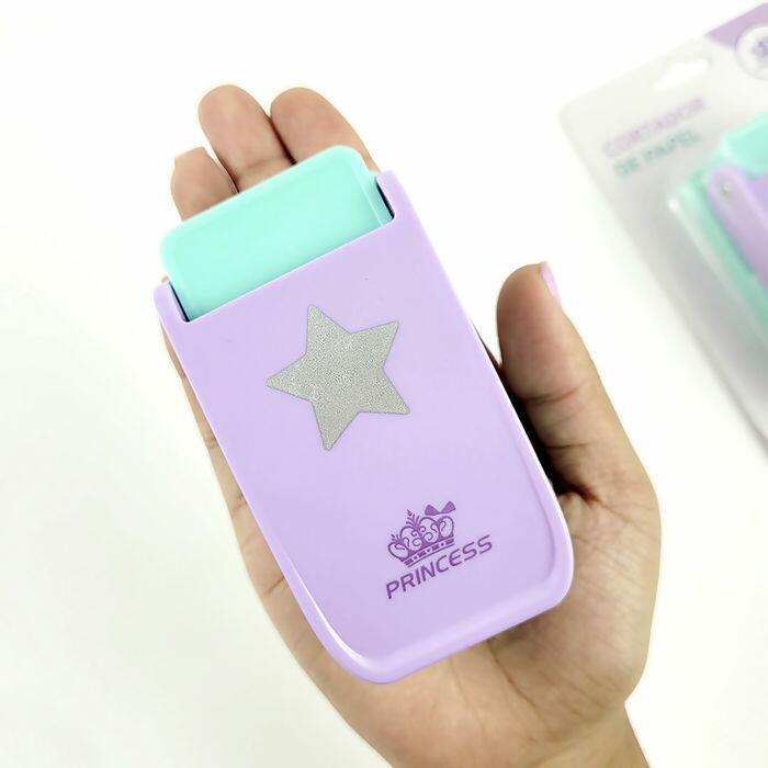 Cortador de Papel - Estrela - Princess - 9,2cm x 5cm - Lilás/Verde - UT.1185