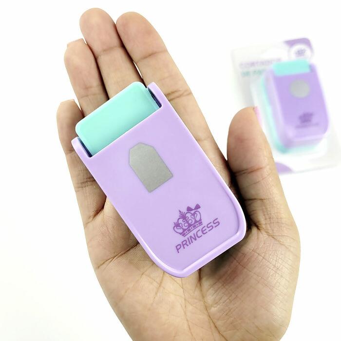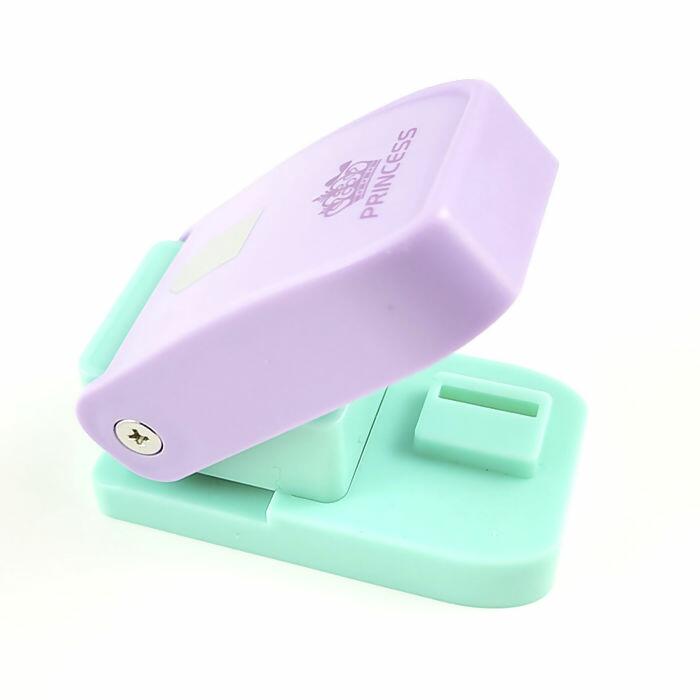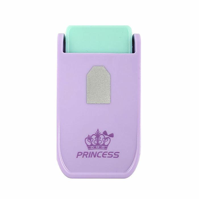 Descrição Cortador de Papel - Etiqueta - Princess - 6,8cm x 3,8cm - Lilás/Verde - UT.1184