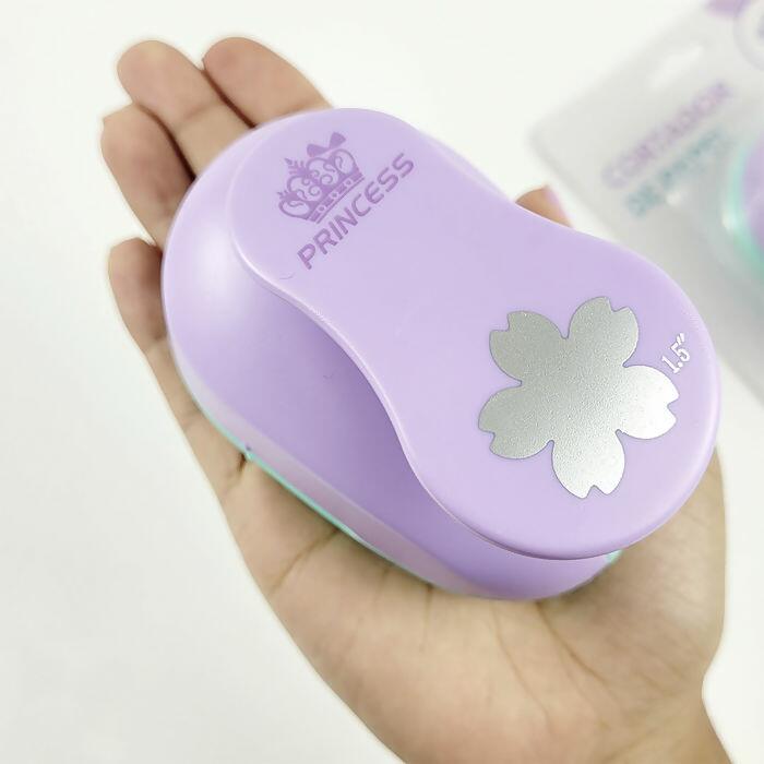 Descrição Cortador de Papel - Flor 01 - Princess - 9cm x 5,5cm - Lilás/Verde - UT.1187