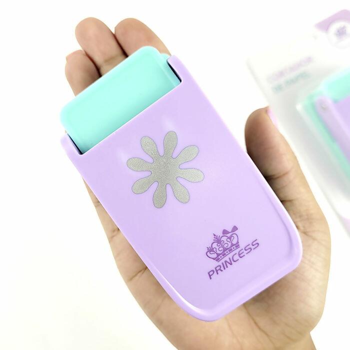 Descrição Cortador de Papel - Flor 02 - Princess - 9,2cm x 5cm - Lilás/Verde - UT.1185