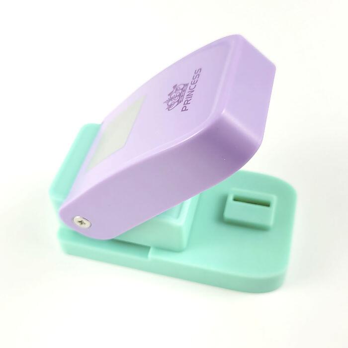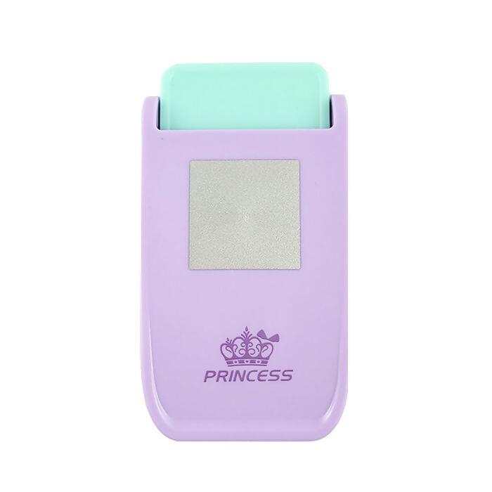 Descrição Cortador de Papel - Quadrado - Princess - 6,8cm x 3,8cm - Lilás/Verde - UT.1184
