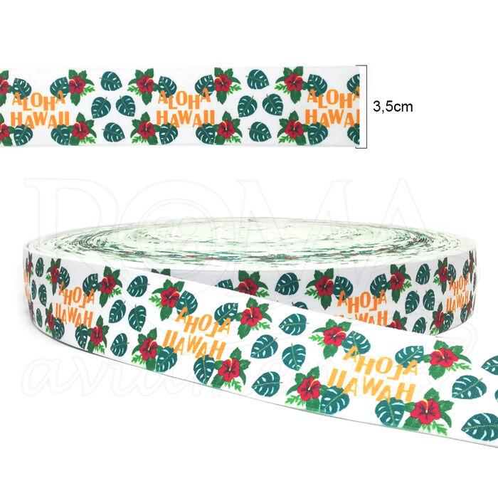 Descrição Elástico Aloha Hawaii - 3,5cm x 48y - Branco - RO.117005