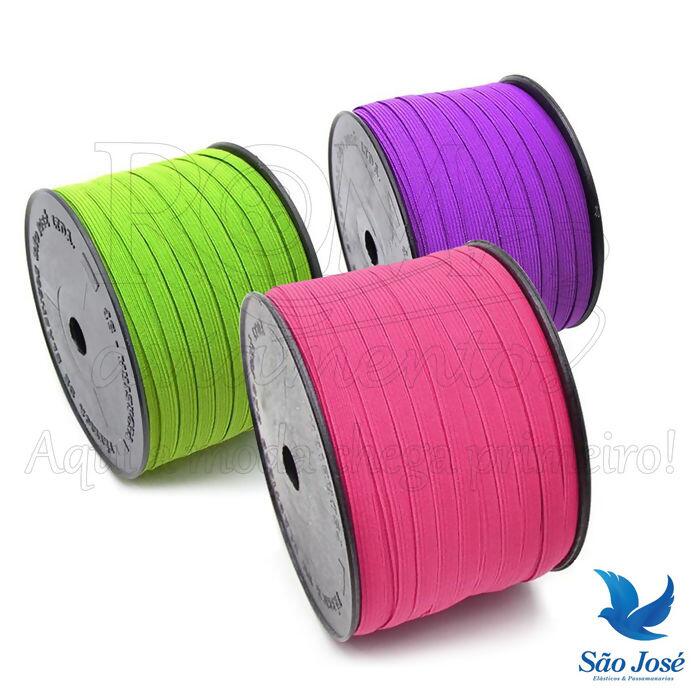 Aqui na Roma Aviamentos você encontra elástico colombe crochet colorido, indicado para costura de camisas, lingeries, malhas, blusas, agasalhos, etc, em tecidos leves e médios, de composição mista ou sintética. O poliéster tem a vantagem de dar elasticidade ao ponto, sendo mais resistente.