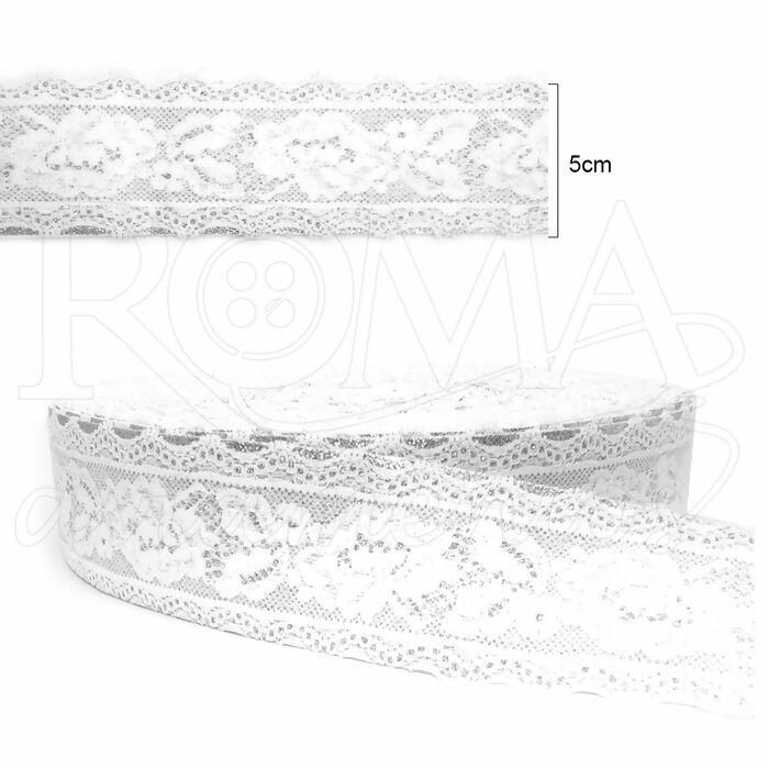 Elástico com Renda - 5cm x 25y - Branco / Prata - RO.110035