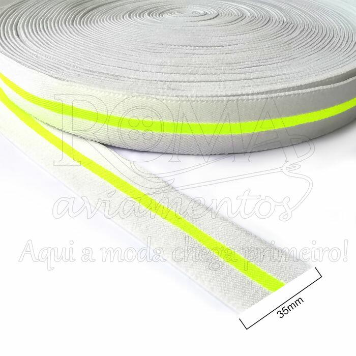Elástico Listrado - 35mm x 25m - Branco / Amarelo Flúor - RO.183622