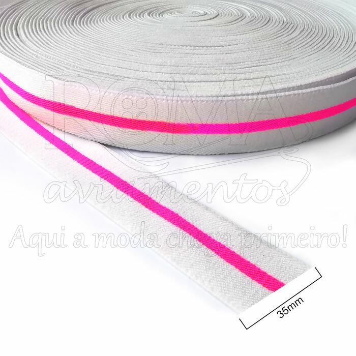 Elástico Listrado - 35mm x 25m - Branco / Pink - RO.183622