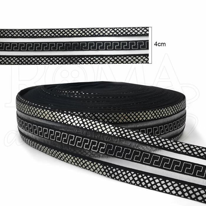 Elástico Poliéster Estampado - 4cm x 10y - Preto - RO.150098